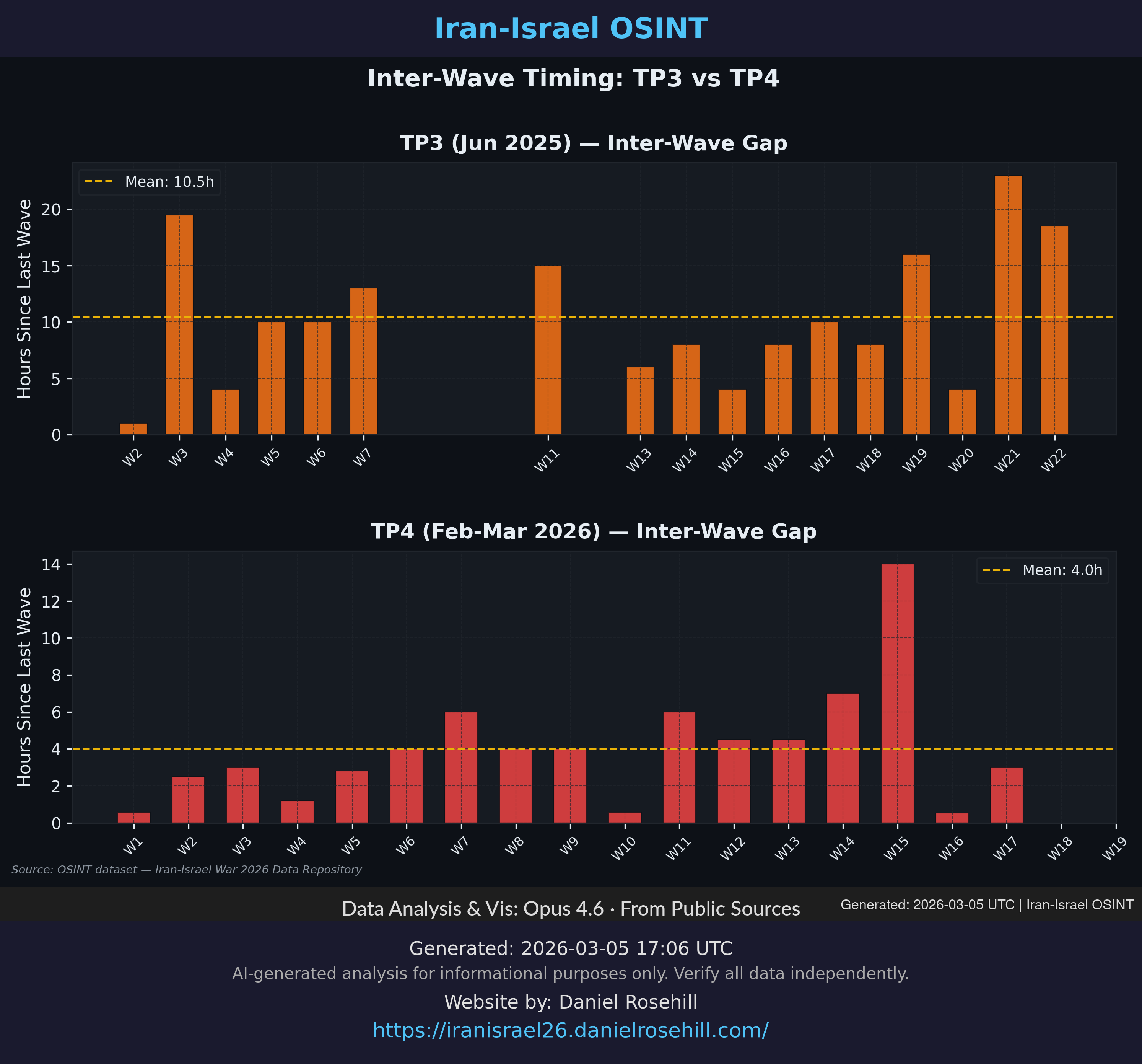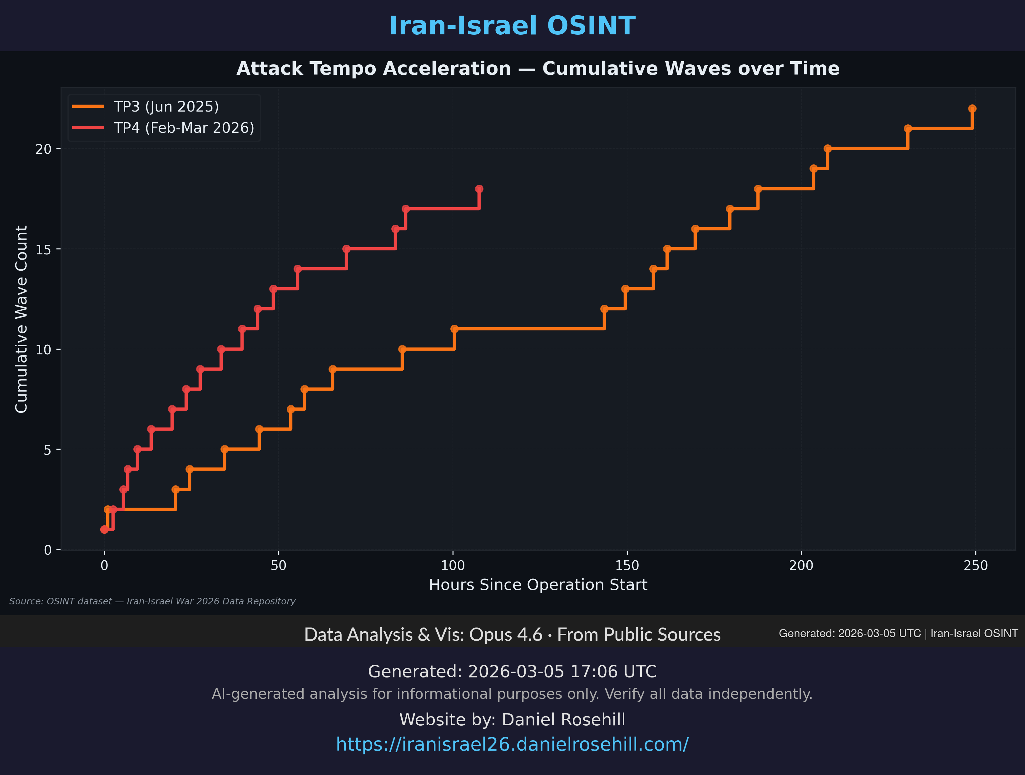 Comparative tempo analysis between the Twelve-Day War (TP3) and the ongoing TP4 operation.