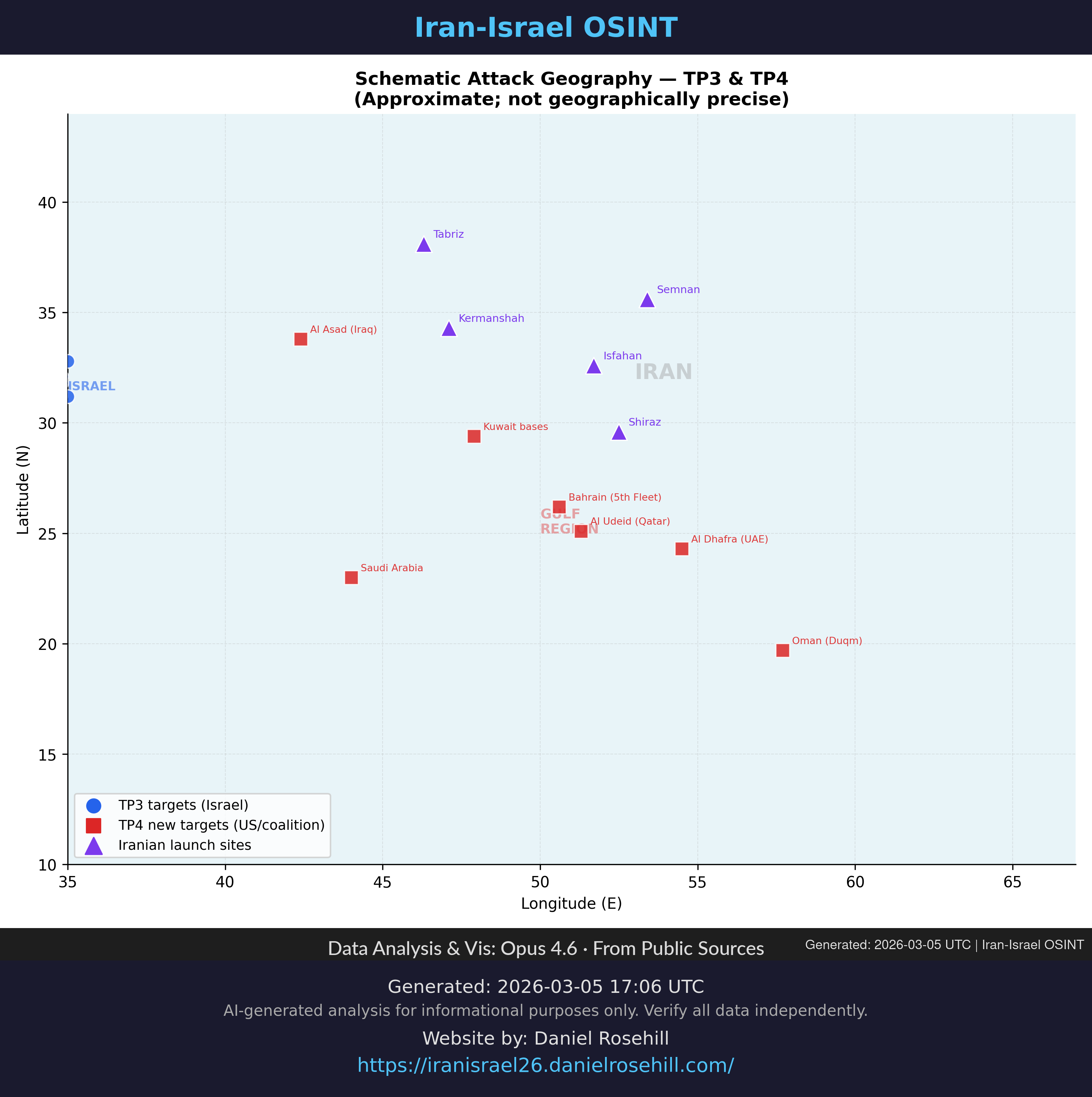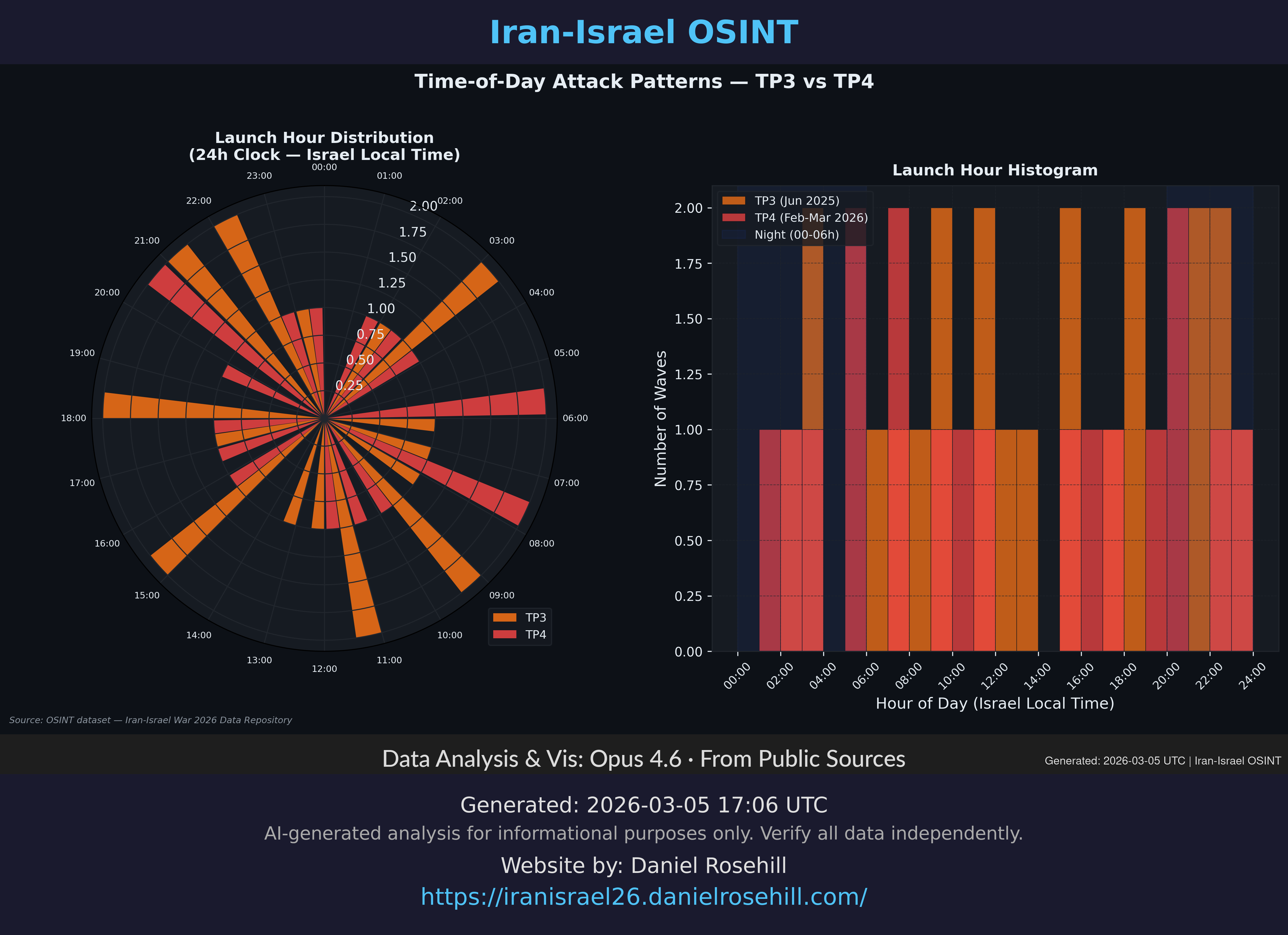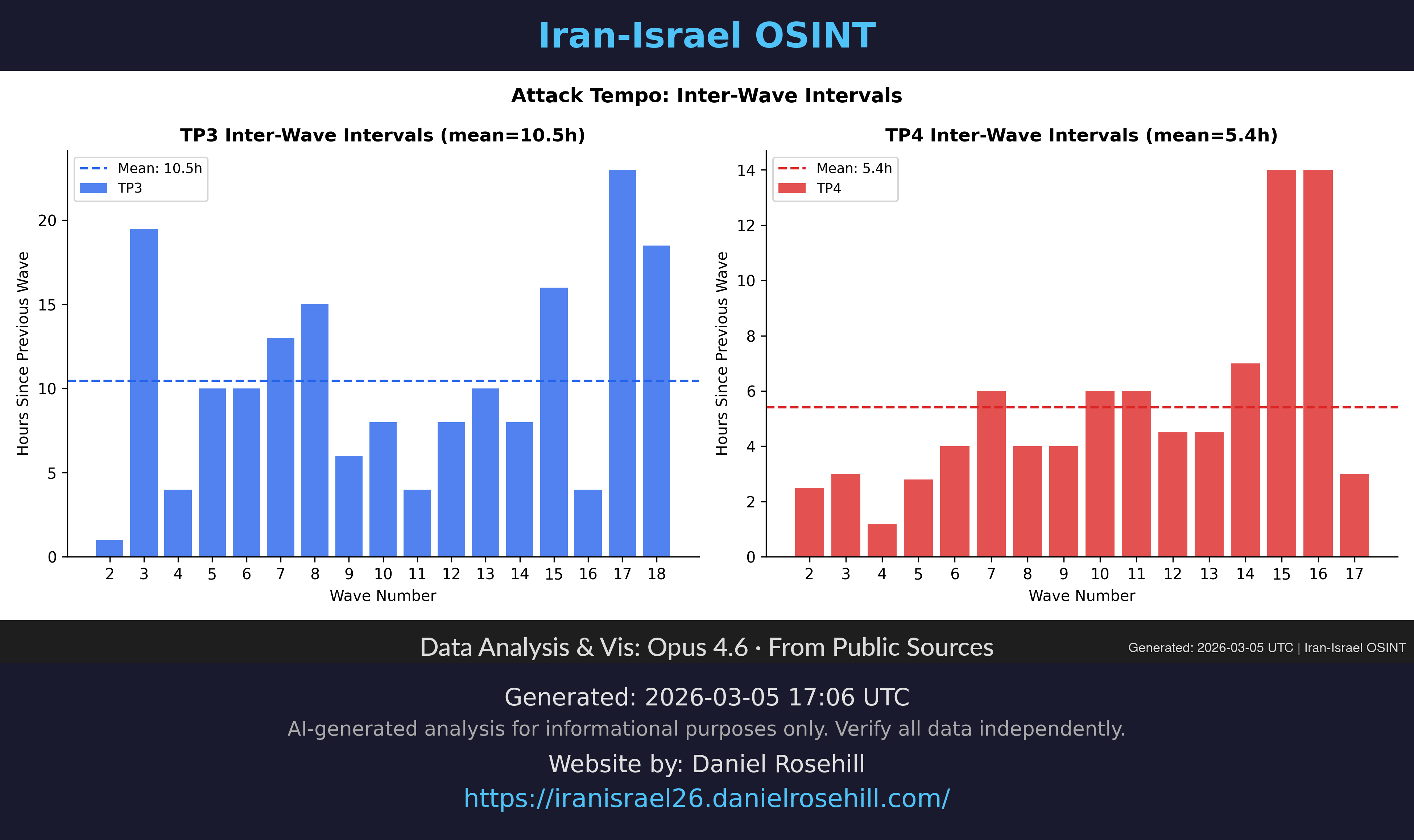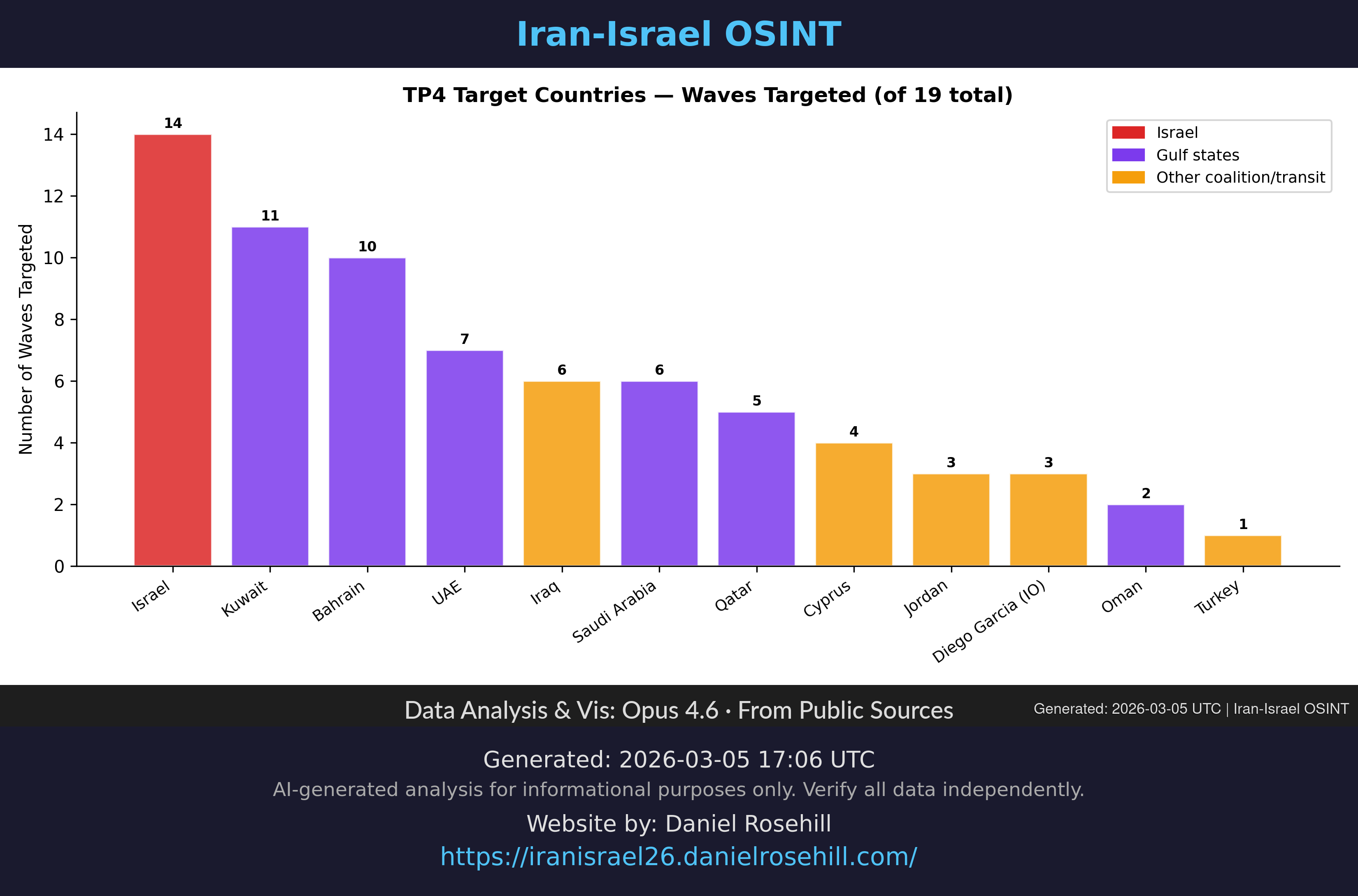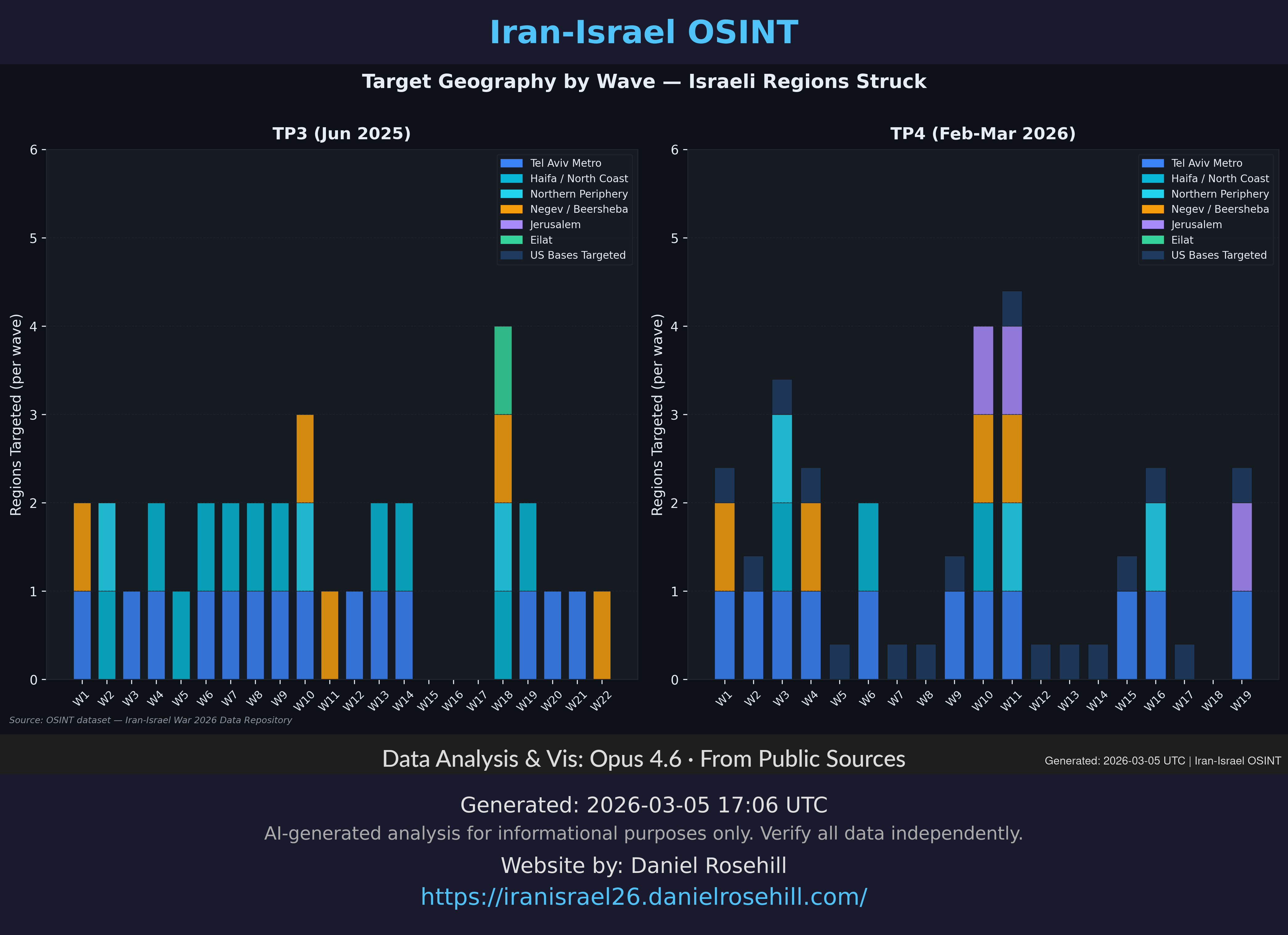Charts and visualizations from the Iran-Israel OSINT dataset, organized by topic. Click any chart to view full size. See also the reports library.