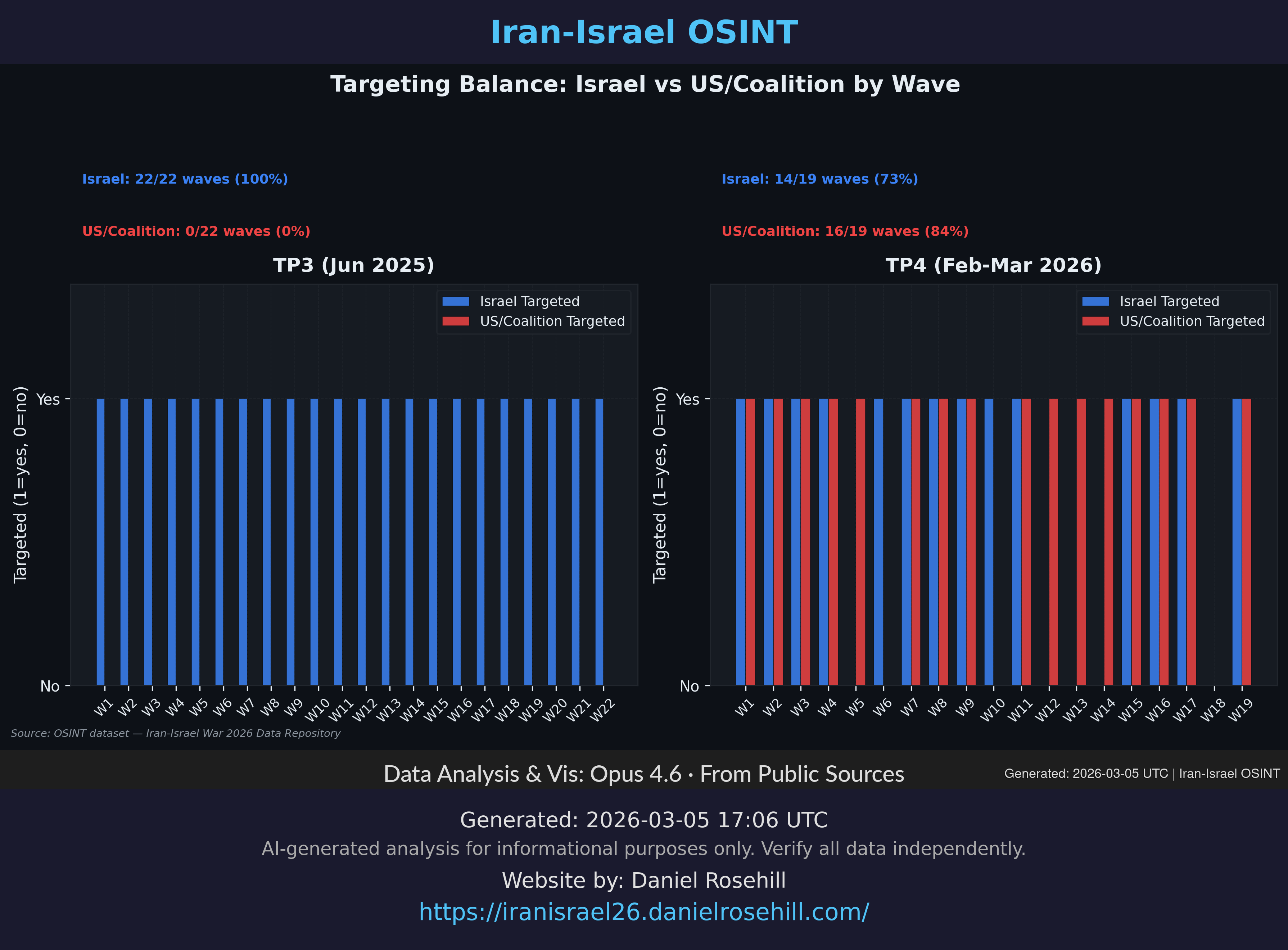 Balance between Israeli targets and US/coalition base targets per wave — a key TP4 evolution.